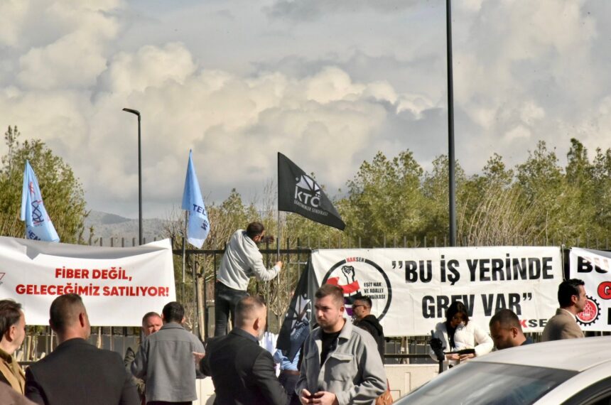 Cumhuriyet Meclisi önündeki sendika yetkilileri, Bakanlar Kurulu’nun grev erteleme kararını tanımayacaklarını açıkladı. Grev erteleme kararı polis tarafından Meclis önündeki sendika yetkililerine duyuruldu ve “Bu İş Yerinde Grev Var” pankartlar...