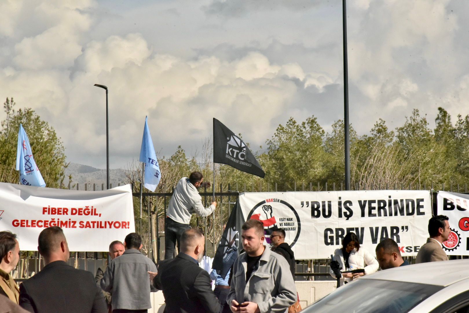 Türk-Sen Başkanı Arslan Bıçaklı da, ülkede sendikalaşma ve grev yapmanın anayasal hak olduğunu belirtti.