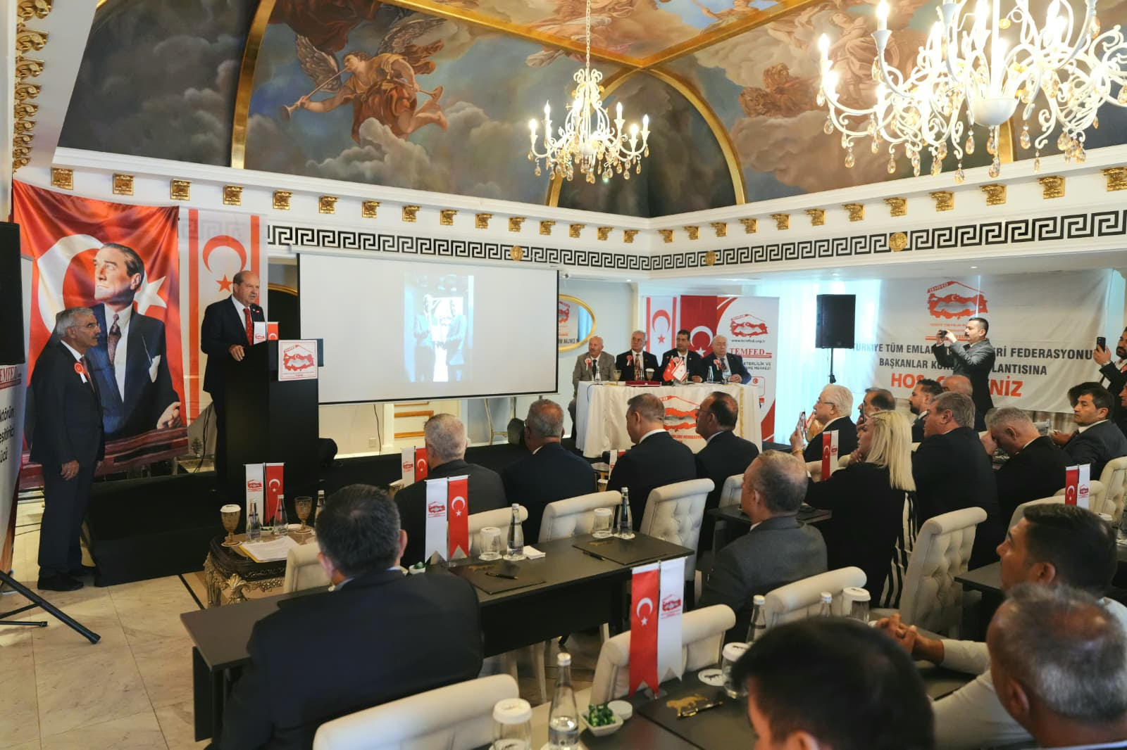 Cumhurbaşkanı ve bağımsız Cumhurbaşkanı adayı Ersin Tatar, Türkiye Tüm Emlak Müşavirleri Federasyonu’nun (TEMFED) Kuzey Kıbrıs Türk Cumhuriyeti’nde gerçekleştirdiği ikinci başkanlar kurulunun açılış toplantısına katıldı.